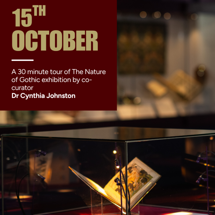 This Wednesday we are pleased to welcome Dr Cynthia Johnston, who will deliver a short tour of The Nature of Gothic exhibition.